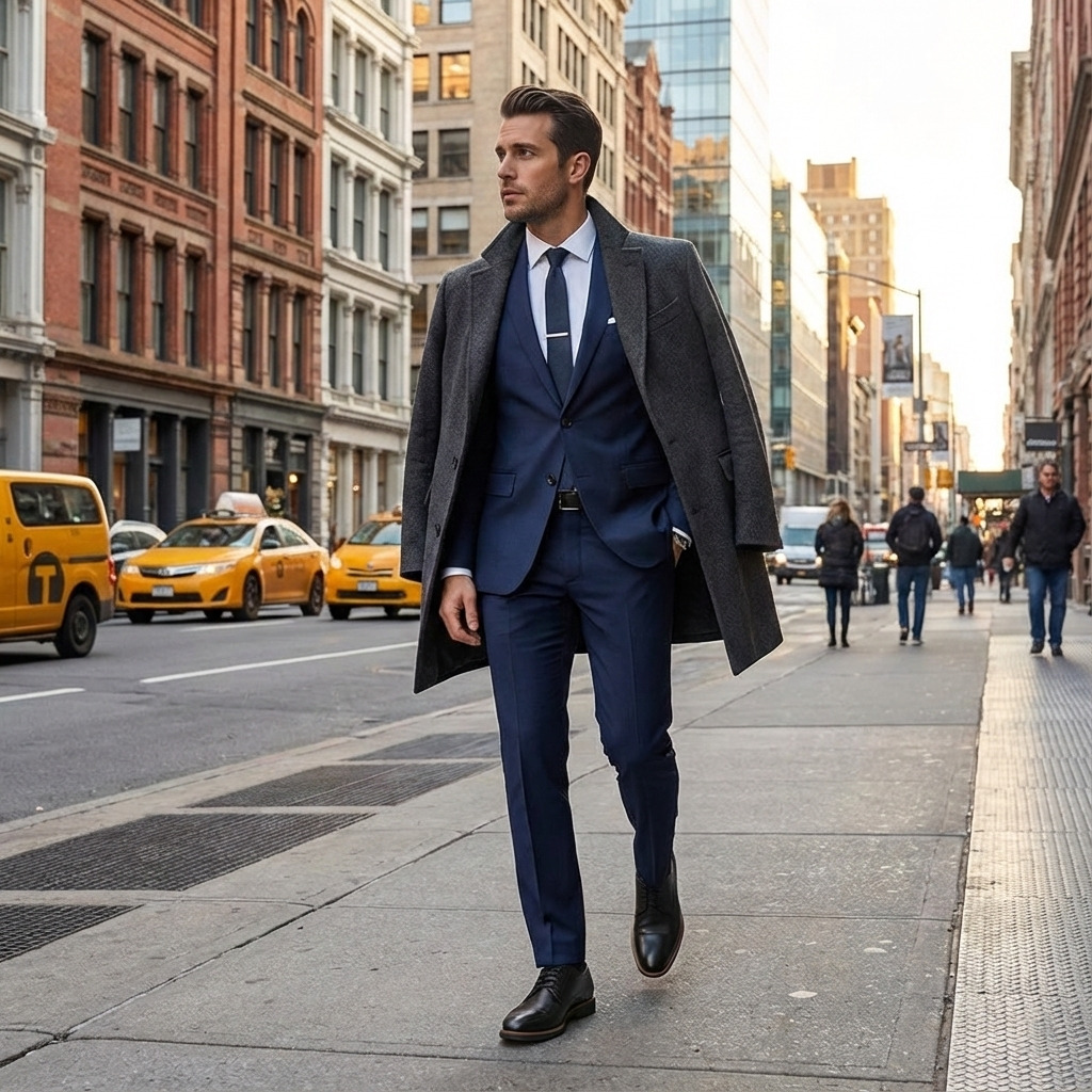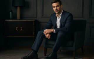 Em produções formais, o Derby Logan se encaixa com naturalidade. Ele harmoniza muito bem com ternos em tons sóbrios como preto, cinza grafite, azul-marinho e marrom escuro. Para ambientes corporativos, a combinação com blazer estruturado e calça social cria uma imagem de autoridade discreta e profissionalismo.