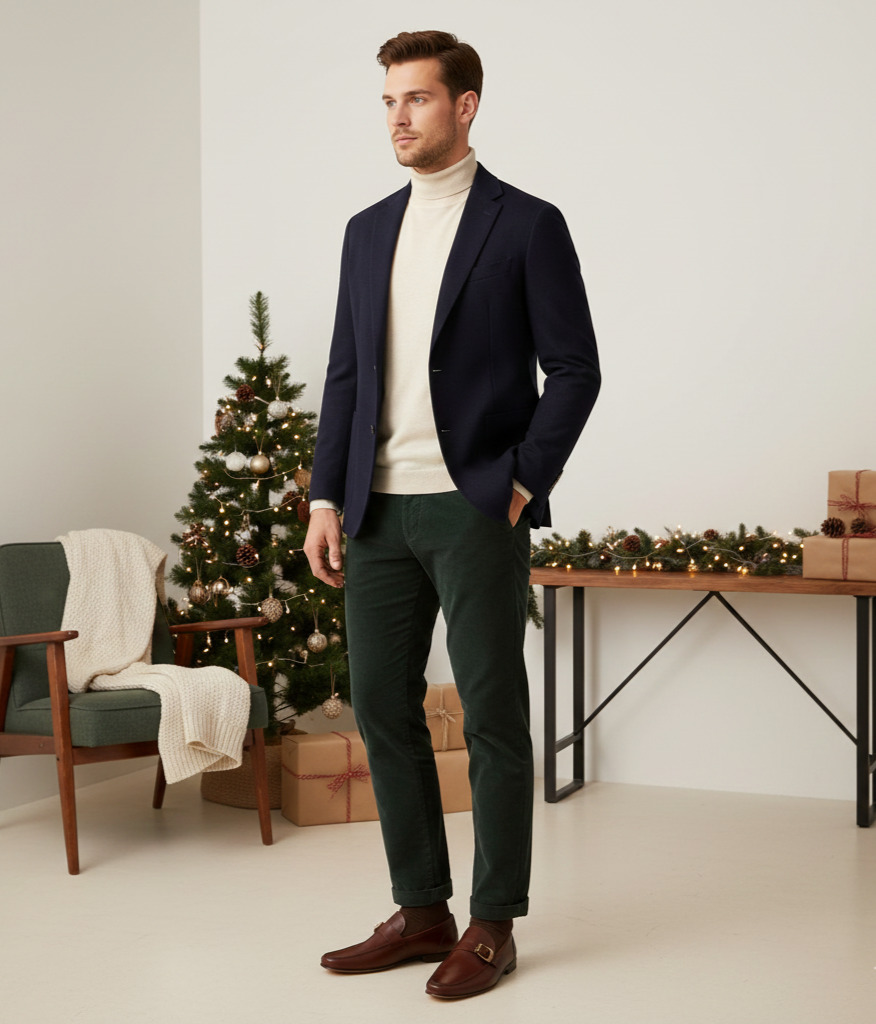 Nem toda festa de fim de ano exige formalidade total. Para eventos que pedem um visual elegante, mas menos engessado, existem modelos que transitam bem entre o social e o casual refinado. Eles combinam estrutura clássica com conforto e flexibilidade, permitindo uso prolongado durante a noite.