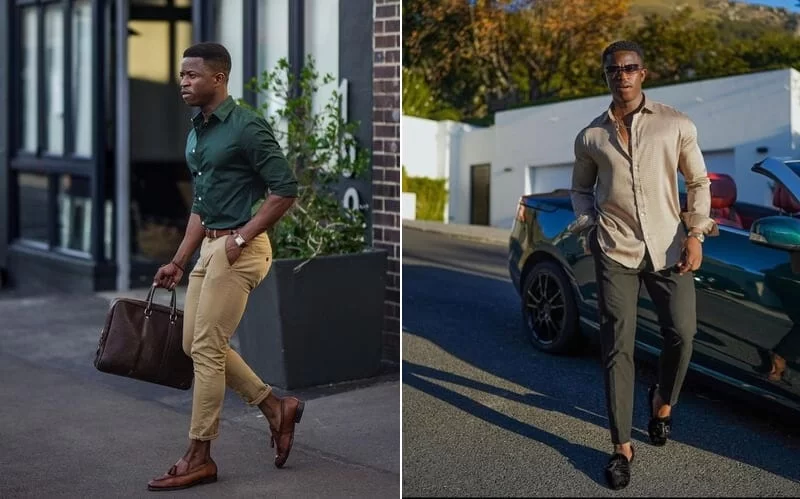 Em escritórios com dress code mais flexível, usar loafers sem meia pode ser uma ótima escolha. Combine com calças de alfaiataria levemente ajustadas e camisas sociais de linho ou algodão. Evite esse estilo em ambientes extremamente formais, onde a gravata é obrigatória.