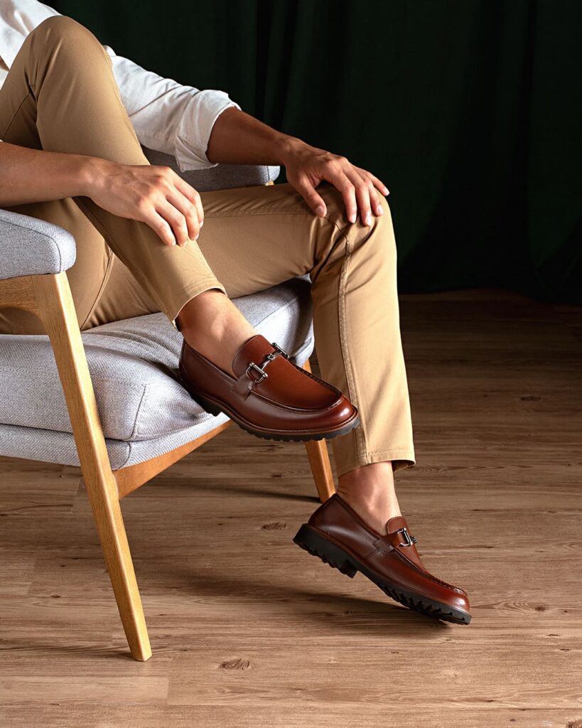 - Ambientes formais: quando combinado com calças de alfaiataria e camisa social, o loafer assume um papel sofisticado, sendo ideal para reuniões de negócios e eventos sociais.